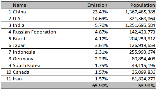 Eleven out of the 196 countries in the world have half of the planet’s population and contribute more than 65% of total greenhouse gas emissions.*6 *7